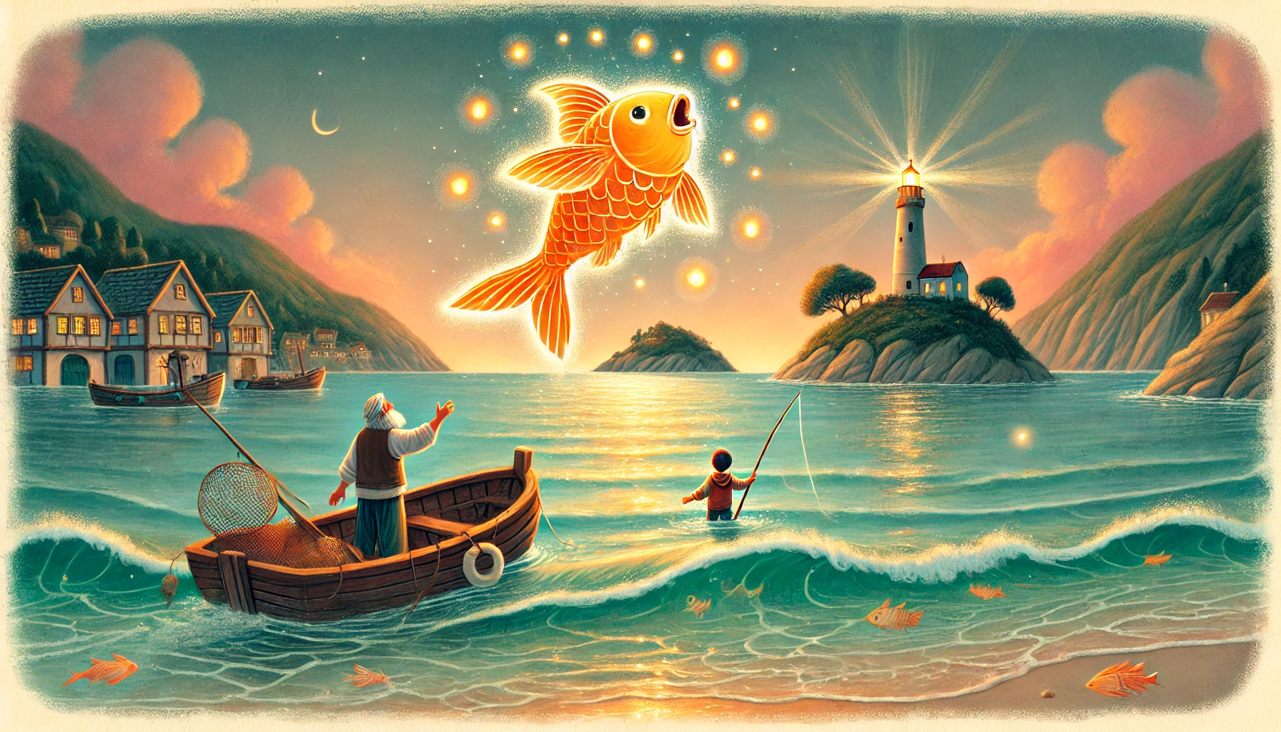 Bir zamanlar güzel bir sahil kasabasında yaşayan küçük bir çocuk varmış; adı Deniz’miş. Deniz, denizi çok severmiş ve babasıyla birlikte balık tutmaya gitmek onun en sevdiği şeymiş. Bir sabah erkenden babasıyla birlikte küçük teknelerine binmişler ve açık denize doğru ilerlemişler.